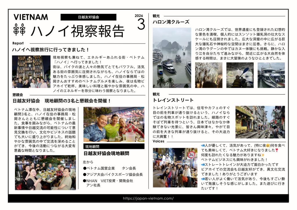 先日、日越友好協会の活動の一環として、エネルギーあふれるベトナム・ハノイへ現地視察に行ってまいりました!