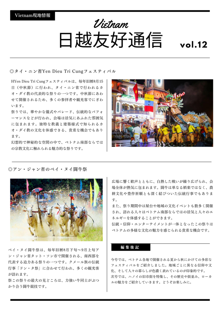 今号では、ベトナム各地で開催される春から初夏にかけてのフェスティバルを中心にご紹介しています。